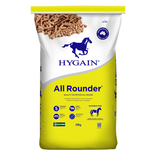 Hygain Allrounder 20kg Hygain Allrounder® is a palatable pelletised feed that provides a balanced nutritional diet suitable for horses and ponies b...